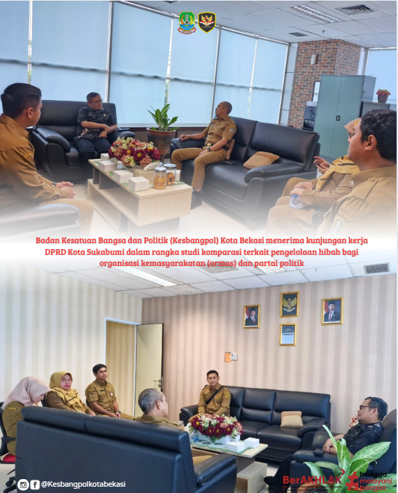 READ MOREBadan Kesatuan Bangsa dan Politik (Kesbangpol) Kota Bekasi menerima kunjungan kerja DPRD Kota Sukabumi dalam rangka studi komparasi terkait pengelolaan hibah bagi organisasi kemasyarakatan (ormas) dan ...