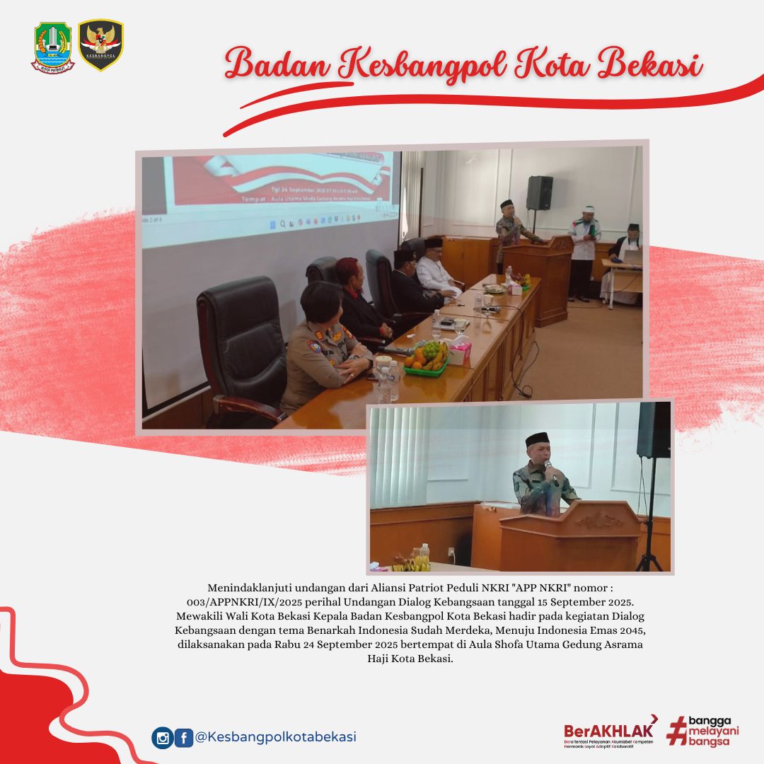 READ MOREKota Bekasi, Rabu 24 September 2025 Menindaklanjuti undangan dari Aliansi Patriot Peduli NKRI "APP NKRI" nomor : 003/APPNKRI/IX/2025 perihal Undangan Dialog Kebangsaan tanggal 15 September 2025. Me ...