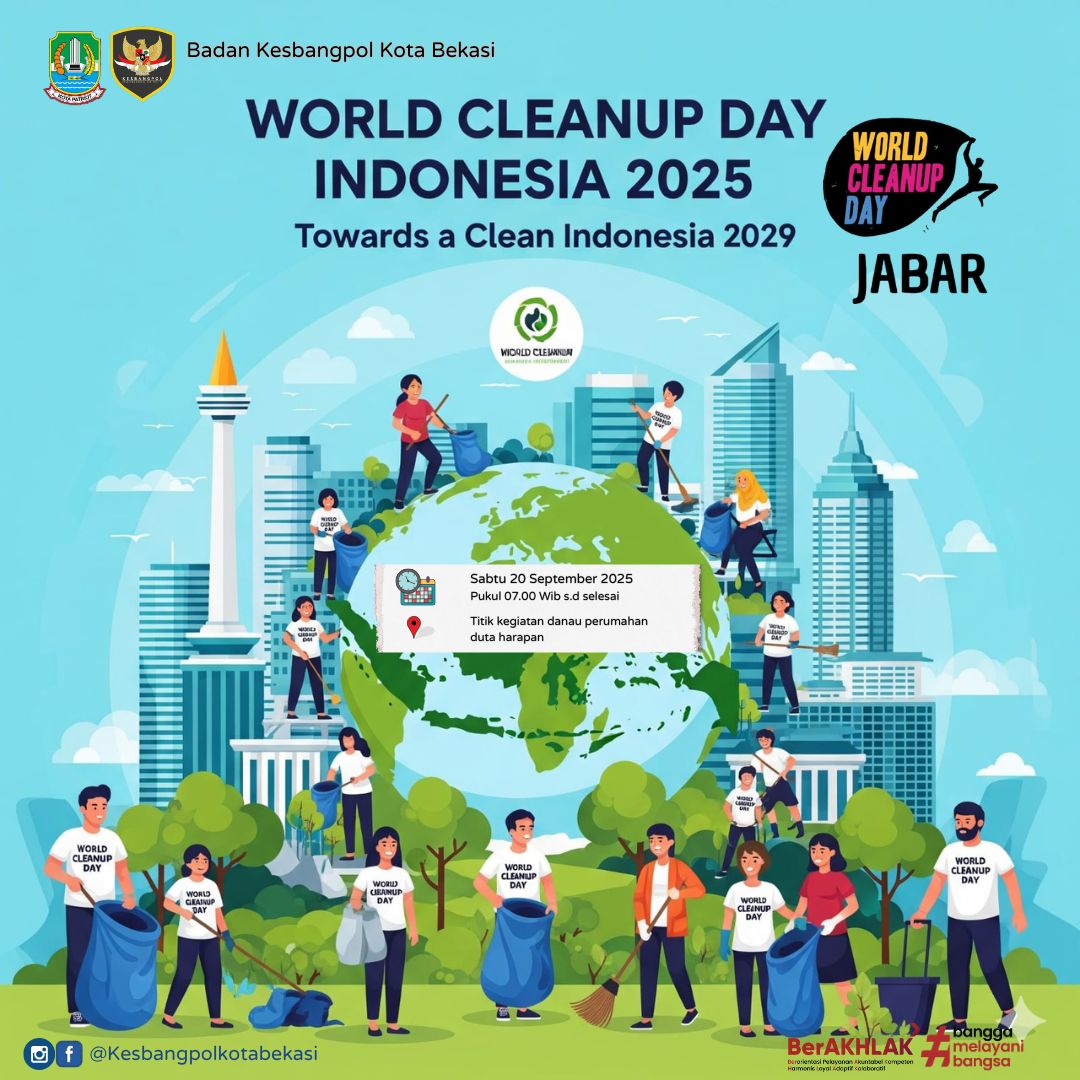 ????? WORLD CLEANUP DAY INDONESIA 2025 ????? Bersama kita wujudkan aksi nyata menuju Indonesia Bersih 2029 ???????????? ???? Sabtu, 20 September 2025 ???? Pukul 07.00 WIB s/d selesai ???? Titik ...