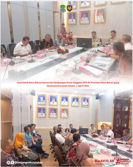 READ MOREDalam rangka memperkuat sinergi antara pemerintah pusat dan daerah, Pemerintah Kota Bekasi menerima Kunjungan Kerja Anggota DPD RI Provinsi Jawa Barat yang dilaksanakan pada Kamis, 2 April 2026. Kegi ...