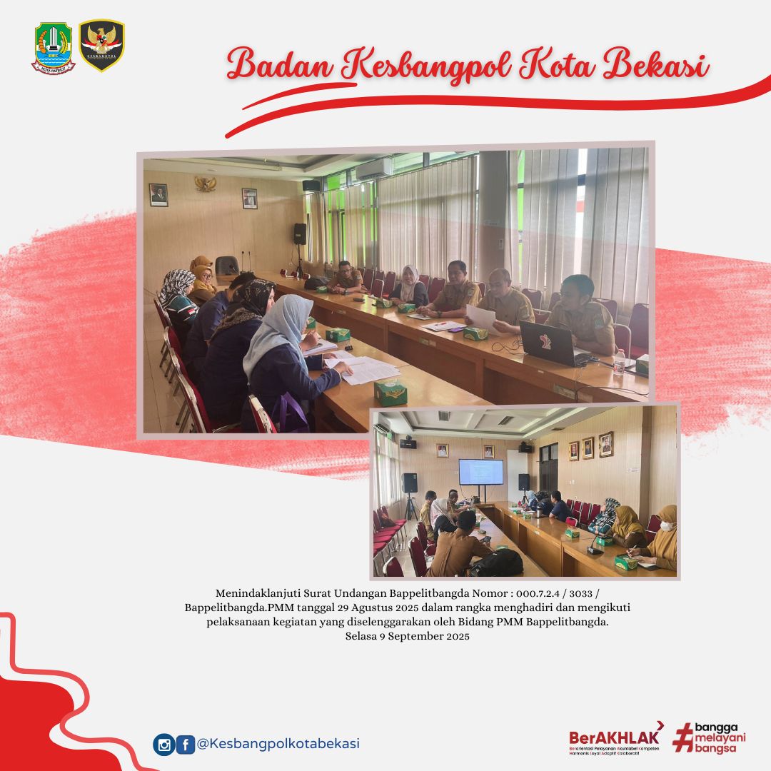 READ MOREKota Bekasi, Selasa 9 september 2025 Menindaklanjuti Surat Undangan Bappelitbangda Nomor : 000.7.2.4 / 3033 / Bappelitbangda.PMM tanggal 29 Agustus 2025 dalam rangka menghadiri dan mengikuti pelaks ...