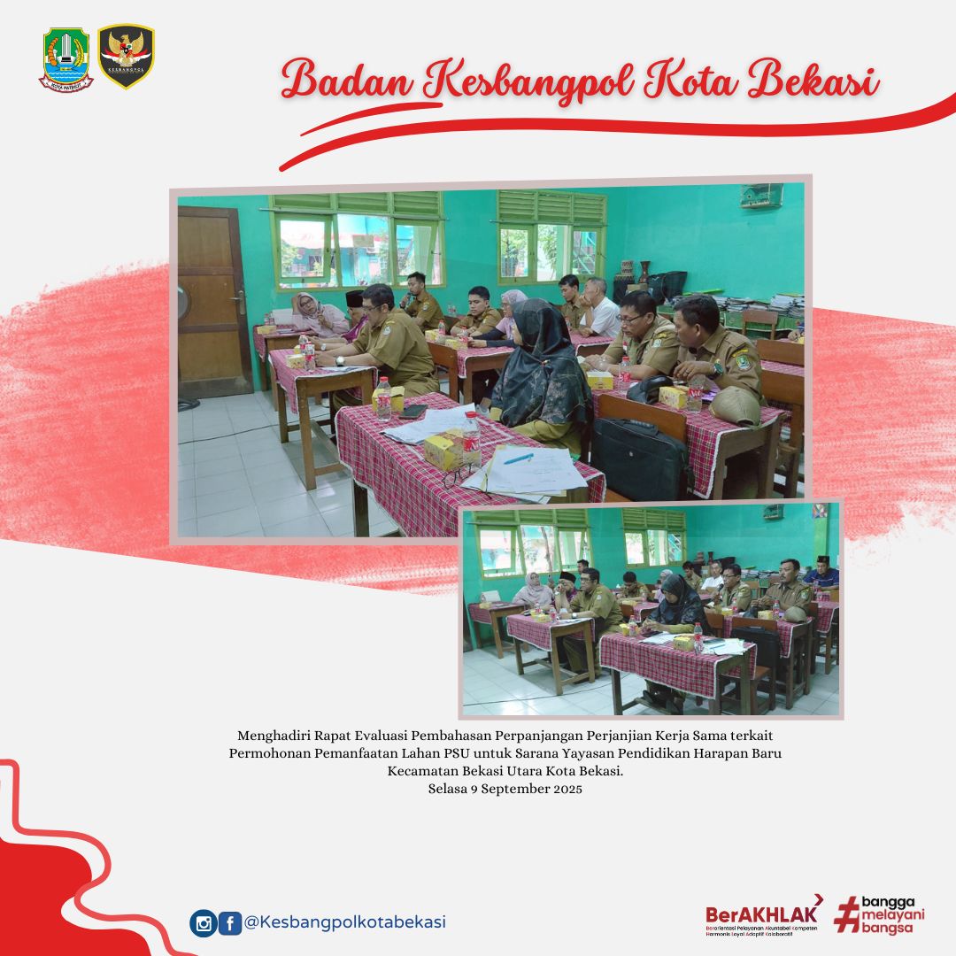 READ MOREKota Bekasi, Selasa 9 September 2025 Menghadiri Rapat Evaluasi Pembahasan Perpanjangan Perjanjian Kerja Sama terkait Permohonan Pemanfaatan Lahan PSU untuk Sarana Yayasan Pendidikan Harapan Baru Ke ...