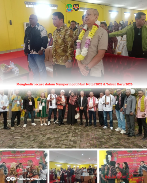 READ MOREPeringatan Hari Natal 2025 & Tahun Baru 2026. Mewakili Wali Kota Bekasi, Kepala Badan Kesatuan Bangsa dan Politik Kota Bekasi bersama Asisten Daerah I Kota Bekasi menghadiri acara Peringatan Hari Nata ...
