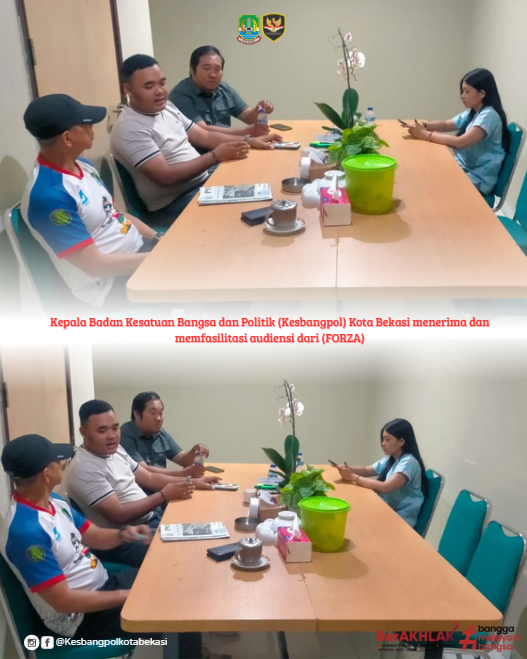 Kepala Badan Kesatuan Bangsa dan Politik (Kesbangpol) Kota Bekasi menerima dan memfasilitasi audiensi dari (FORZA) yang berlangsung di Ruang Rapat Badan Kesbangpol Kota Bekasi. Kegiatan ini dilaksanak ...