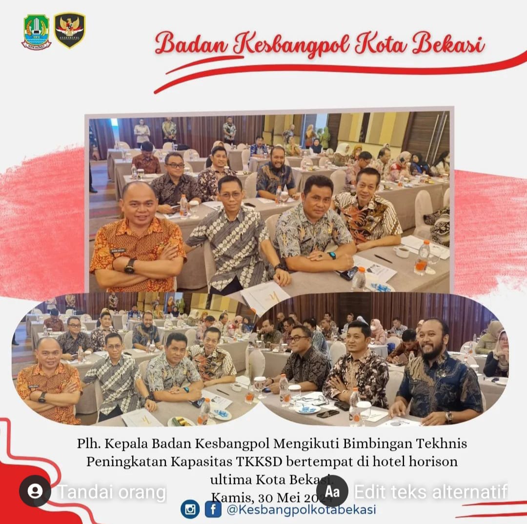 Plh. Kepala Badan Kesbangpol Mengikuti Bimbingan Tekhnis Peningkatan Kapasitas TKKSD Bertempat Di Hotel Horison Ultima Kota Bekasi.