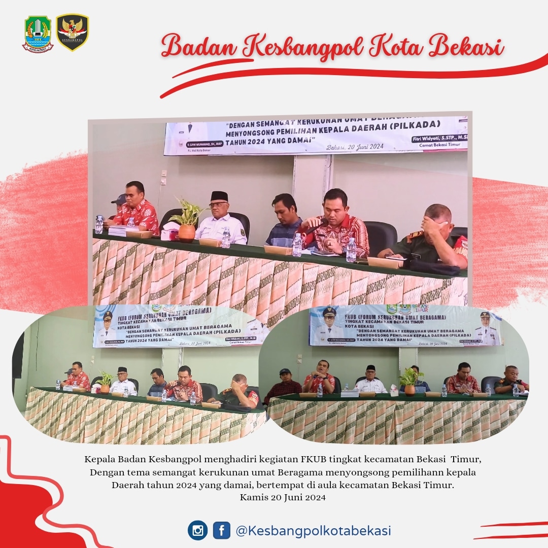 Kepala Badan Kesbangpol Menghadiri Kegiatan FKUB Tingkat Kecamatan Bekasi Timur, Dengan Tema Semangat Kerukunan Umat Beragama Menyongsong Pemilihann Kepala Daerah Tahun 2024 Yang Damai, Bertempat Di Aula Kecamatan Bekasi Timur.
