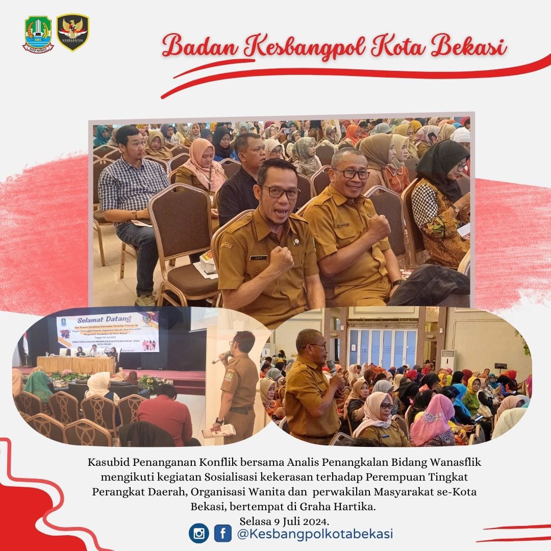 Kasubid Penanganan Konflik Bersama Analis Penangkalan Bidang Wanasflik Mengikuti Kegiatan Sosialisasi Kekerasan Terhadap Perempuan Tingkat Perangkat Daerah, Organisasi Wanita Dan Perwakilan Masyarakat Se-Kota Bekasi, Bertempat Di Graha Hartika.