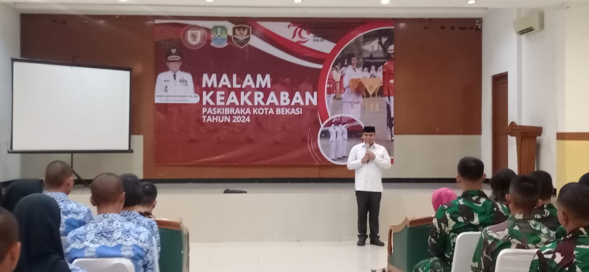 Kepala Badan Kesbangpol Kota Bekasi Memberikan Sambutan Pada Kegiatan Malam Keakraban Paskibraka Kota Bekasi, Sabtu 17 Agustus 2024 Bertempat Di Islamic Center Kota Bekasi