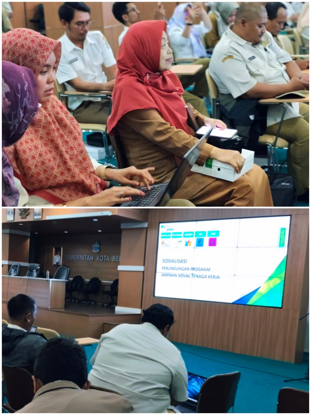Kasubag Umum Dan Kepegawaian Badan Kesbangpol Menghadiri Sosialisasi Perlindungan Program Jaminan Sosial Tenaga Kerja Bertempat Di Nonon Shontanie