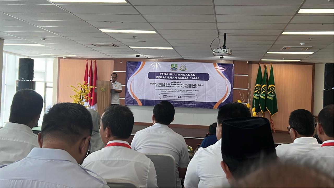 Kepala Badan Kesbangpol Menghadiri Dan Mendampingi Pj. Wali Kota Bekasi Dalam Penandatanganan Perjanjian Kerja Sama Antara Perangkat Daerah Se Kota Bekasi Dan Kejaksaan Negeri Kota Bekasi