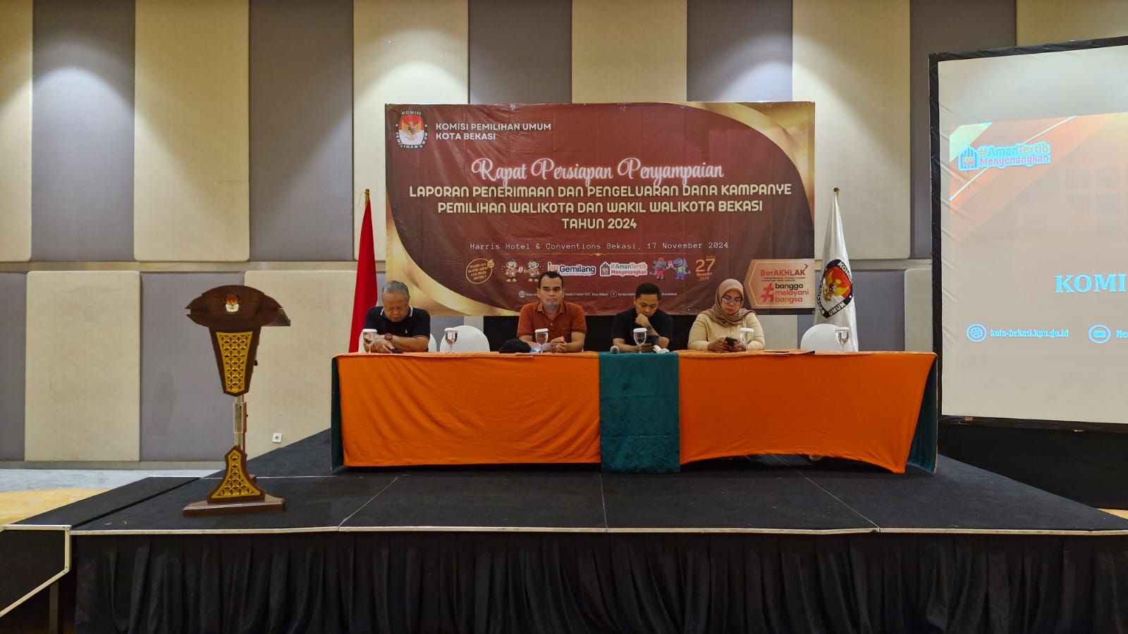 Kepala Badan Kesbangpol Bersama Kasubid Bidang Poldagri Badan Kesbangpol Menghadiri Rapat Persiapan Penyampaian Laporan Penerimaan Dan Pengeluaran Dana Kampanye Pemilihan Walikota Dan Wakil Walikota Bekasi Tahun 2024 Oleh KPU Kota Bekasi Bertempat Di Harris Bekasi