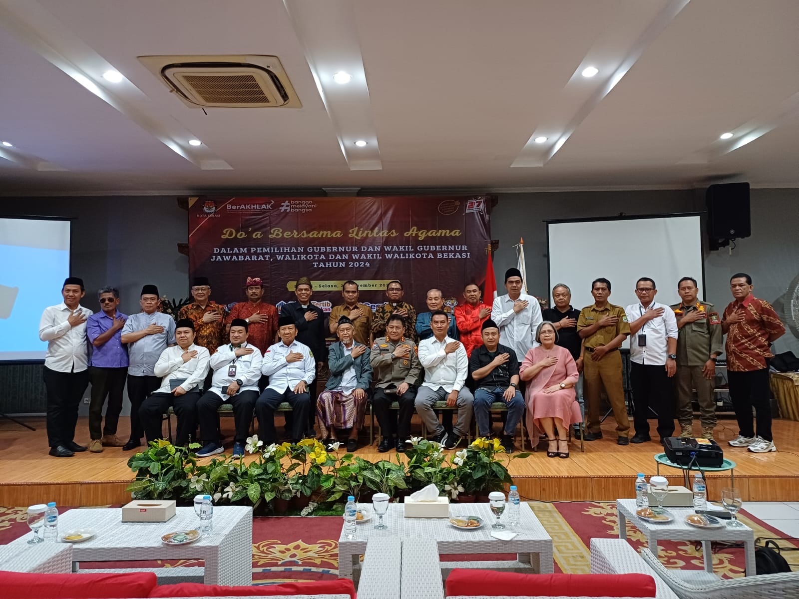 Kepala Badan Kesbangpol Kota Bekasi Bersama Kepala Bidang Poldagri Menghadiri Pelaksanaan Kegiataan Doa Bersama Lintas Agama Dalam Rangka Pemilihan Gubernur Dan Wakil Gubernur , Walikota Dan Wakil Walikota Bekasi Tahun 2024