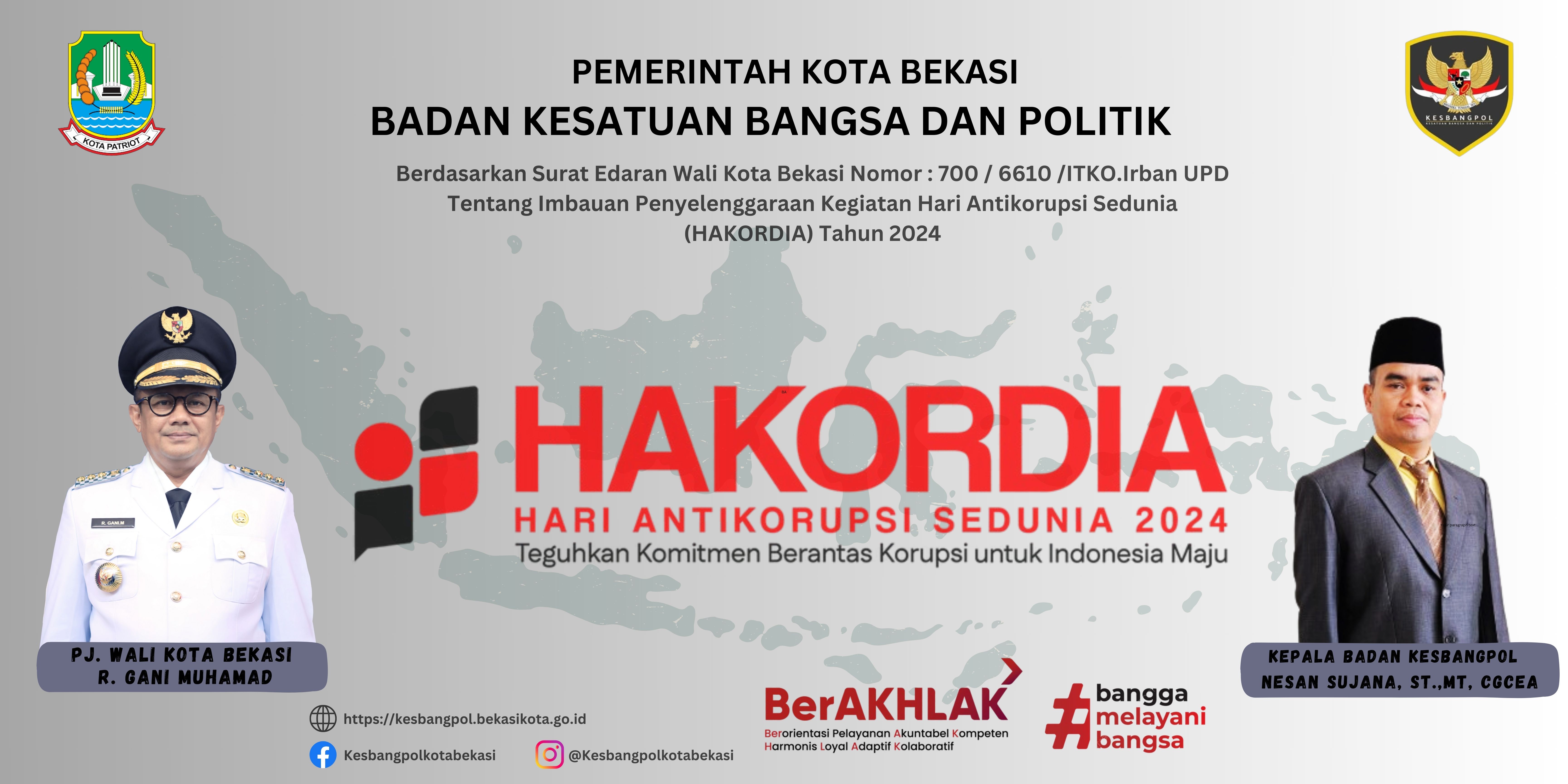 Berdasarkan Surat Edaran Wali Kota Bekasi Nomor : 700 / 6610/ ITKO.Irban UPD Tentang Imabauan Penyelenggaraan Kegiatan Hari Antikorupsi Sedunia (HAKORDIA) Tahun 2024.