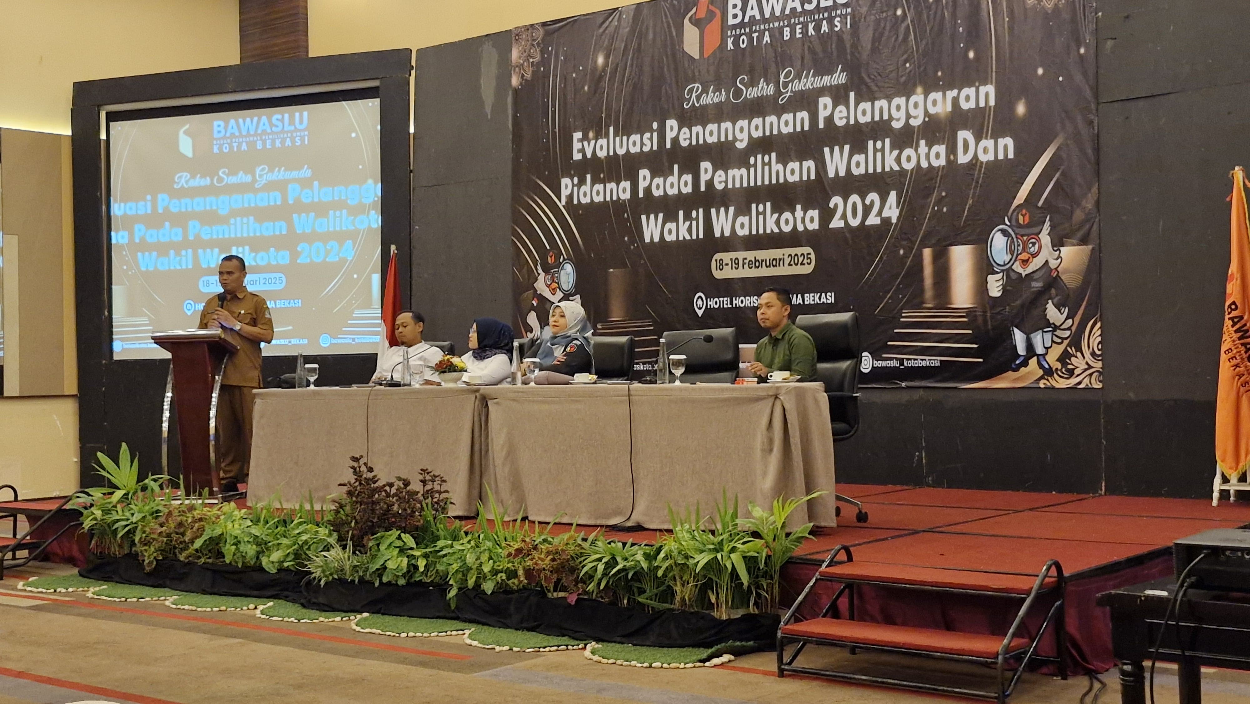 Kepala Badan Kesbangpol Memberikan Sambutan Pada Kegiatan Rakor Sentra Gakkumdu, Evaluasi Penanganan Pelanggaran Pidana Pada Pemilihan Walikota Dan Wakil Walikota 2024 Yang Diselenggarakan Oleh Bawaslu Kota Bekasi Bertempat Di Hotel Horizon Ultima Kota Bekasi