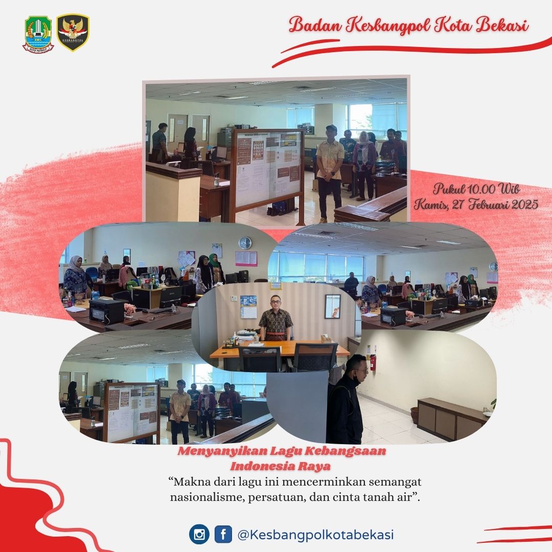 Bentuk Penghormatan Dan Cinta Terhadap Negara Kesatuan Republik Indonesia, Seluruh Aparatur Badan Kesatuan Bangsa Dan Politik Kota Bekasi Menyanyikan Lagu Kebangsaan Indonesia Raya Secara Serentak Pada Hari Kamis 27 Februari 2025, Pukul 10.00 WIB.