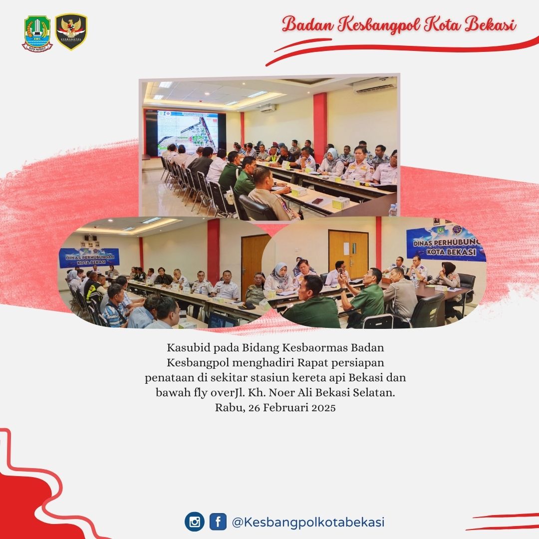 Kasubid Pada Bidang Kesbaormas Badan Kesbangpol Menghadiri Rapat Persiapan Penataan Di Sekitar Stasiun Kereta Api Bekasi Dan Bawah Fly OverJl. Kh. Noer Ali Bekasi Selatan.
