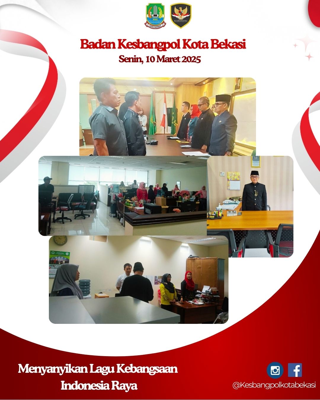 Bentuk Penghormatan Dan Cinta Terhadap Negara Kesatuan Republik Indonesia, Seluruh Aparatur Badan Kesatuan Bangsa Dan Politik Kota Bekasi Menyanyikan Lagu Kebangsaan Indonesia Raya Secara Serentak Pada Hari Senin 10 Maret 2025, Pukul 10.00 WIB.