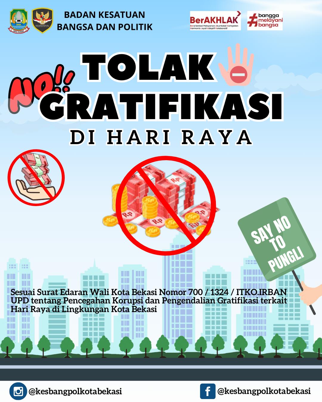 Berdasarkan Surat Edaran Wali Kota Bekasi Nomor 700/1324/ITKO.IRBAN UPD Tentang Pencegahan Korupsi Dan Pengendalian Geatifikasi Terkait Hari Raya Di Lingkungan Kota Bekasi.