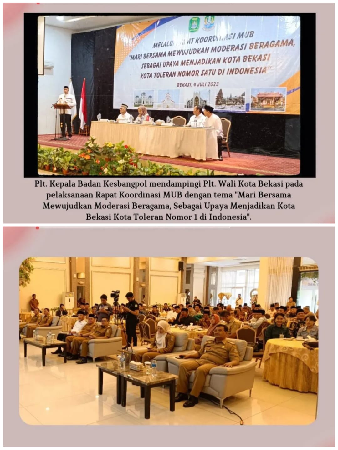 Kota Bekasi- Selasa 4 Juli 2023 Plt. Kepala Badan Kesbangpol Mendampingi Plt. Wali Kota Bekasi Pada Pelaksanaan Rapat Koordinasi MUB Dengan Tema "Mari Bersama Mewujudkan Moderasi Beragama, Sebagai Upaya Menjadikan Kota Bekasi Kota Toleran Nomor 1 Di Indonesia