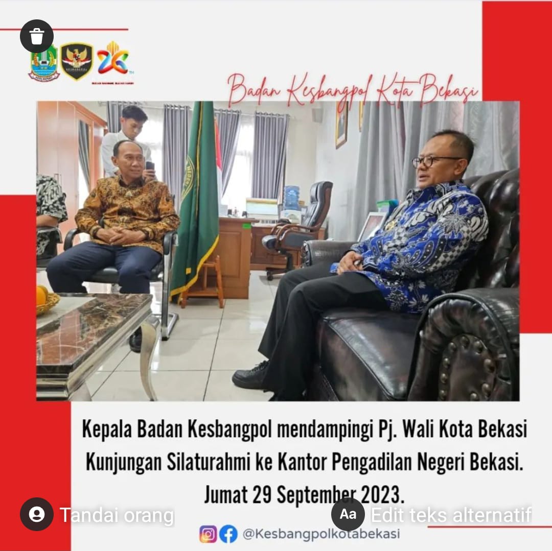 Bekasi, Jumat 29 September 2023. Kepala Badan Kesbangpol Mendampingi Pj. Wali Kota Bekasi Kunjungan Silaturahmi Ke Kantor Pengadilan Negeri Bekasi.