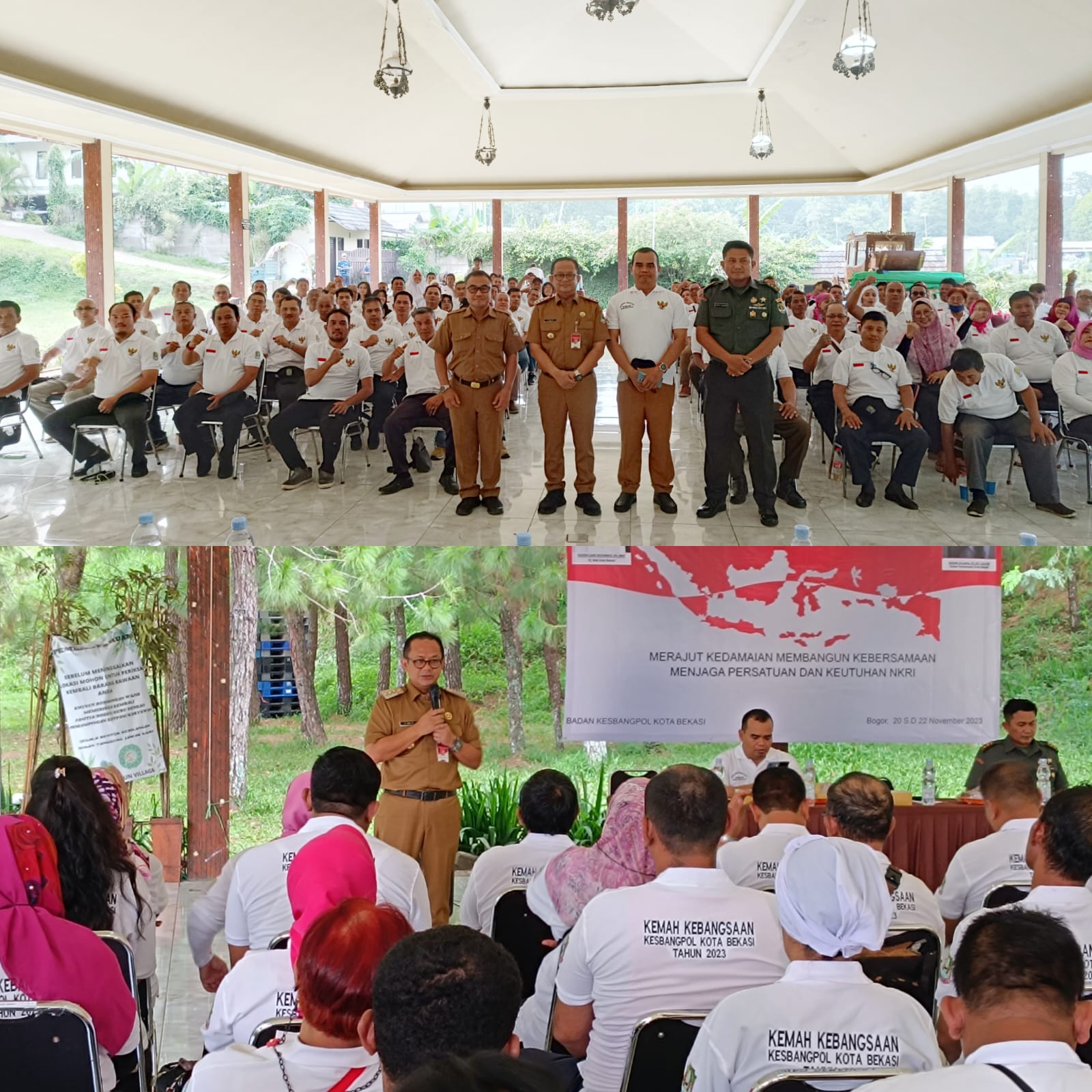 Bekasi, 20 November 2023. Pelaksanaan Kemah Kebangsaan Bagi Ormas/LSM Di Kota Bekasi, Yang Diselenggarakan Pada Senin-Rabu Tanggal 20-22 November 2023, Bertempat Di Semak Daun Village Jl. Raya Pasir Muncang, RT.01/RW.02, Sukamahi, Kec. Megamendung, Kabupaten Bogor, Jawa Barat 16770. Kegiatan Tersebut Guna Menanamkan Kembali Nilai-nilai Kebangsaan, Memperkuat Berkehidupan Berbangsa Dan Bernegara Serta Menanamkan Rasa Cinta Tanah Air. Kegiatan Dihadiri Oleh Pj. Wali Kota Bekasi Memberikan Sambutan Dan Sekaligus Membuka Pelaksanaan Kegiatan Kemah Kebangsaan Bagi Ormas/LSM Di Kota Bekasi.