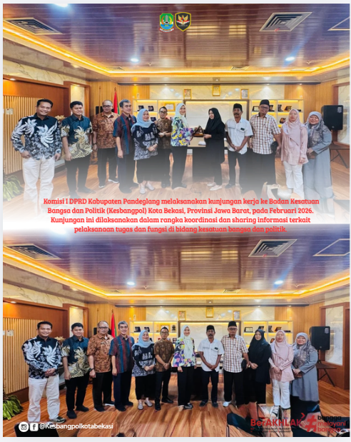 Menindaklanjuti Surat Tugas Pimpinan Dan Anggota Komisi I DPRD Kabupaten Pandeglang, Komisi I DPRD Kabupaten Pandeglang Melaksanakan Kunjungan Kerja Ke Badan Kesatuan Bangsa Dan Politik (Kesbangpol) Kota Bekasi, Provinsi Jawa Barat, Pada Februari 2026. Kunjungan Ini Dilaksanakan Dalam Rangka Koordinasi Dan Sharing Informasi Terkait Pelaksanaan Tugas Dan Fungsi Di Bidang Kesatuan Bangsa Dan Politik.